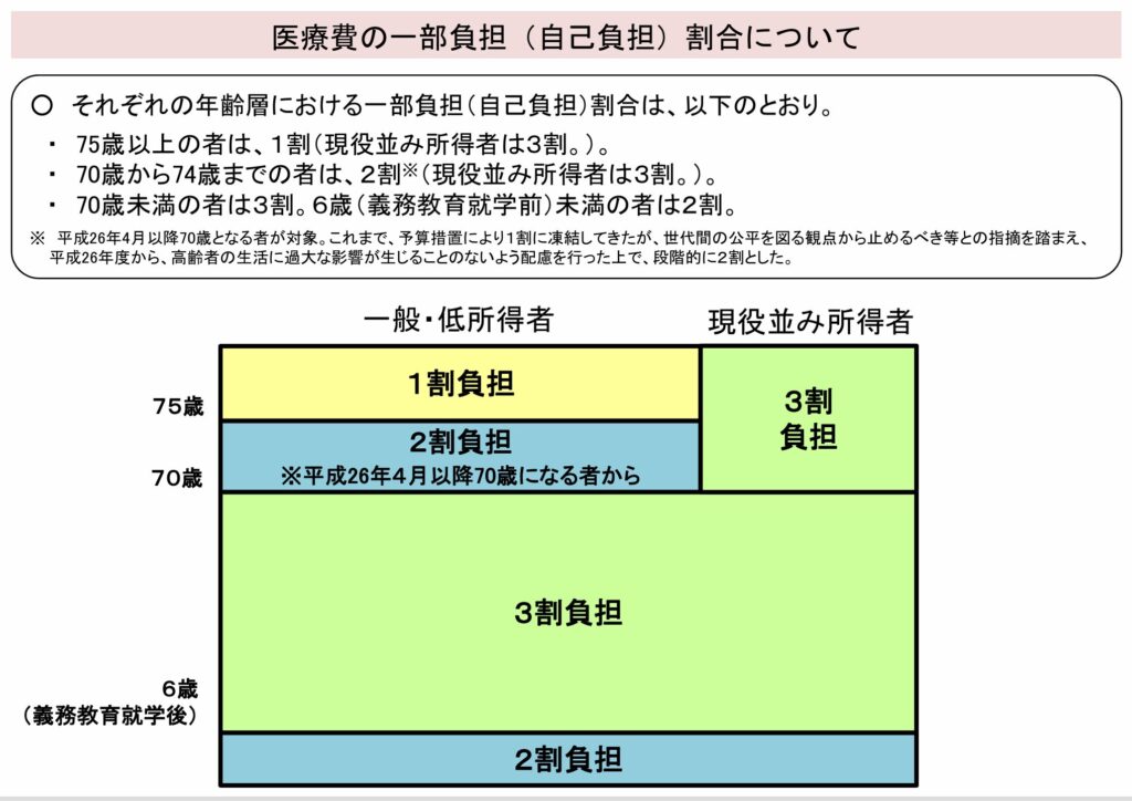 医療機関窓口での自己負担割合は一般で1割、一定以上の所得がある方は2割、現役並みの所得がある方は3割。
