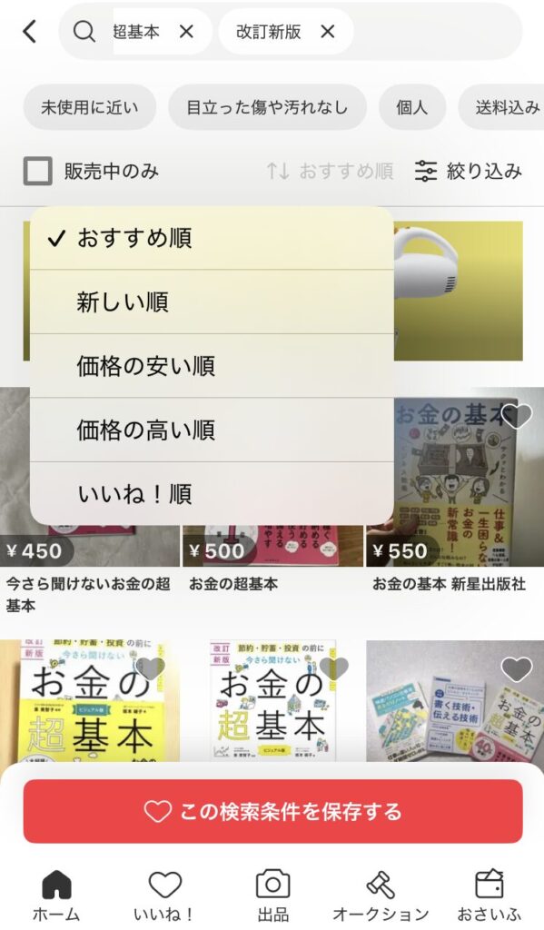 「夏服 レディース」など広いジャンルで検索したり、安い順に並び変えたり、商品の状態を絞り込んだりなど、検索の仕方も多く便利!